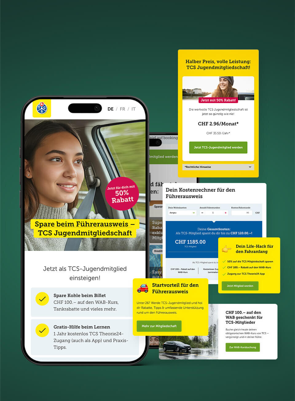 A redesigned calculator tool transparently highlights the potential cost savings of a youth membership. This makes the driving licence easier to plan from an early stage and makes the financial benefits immediately apparent.
