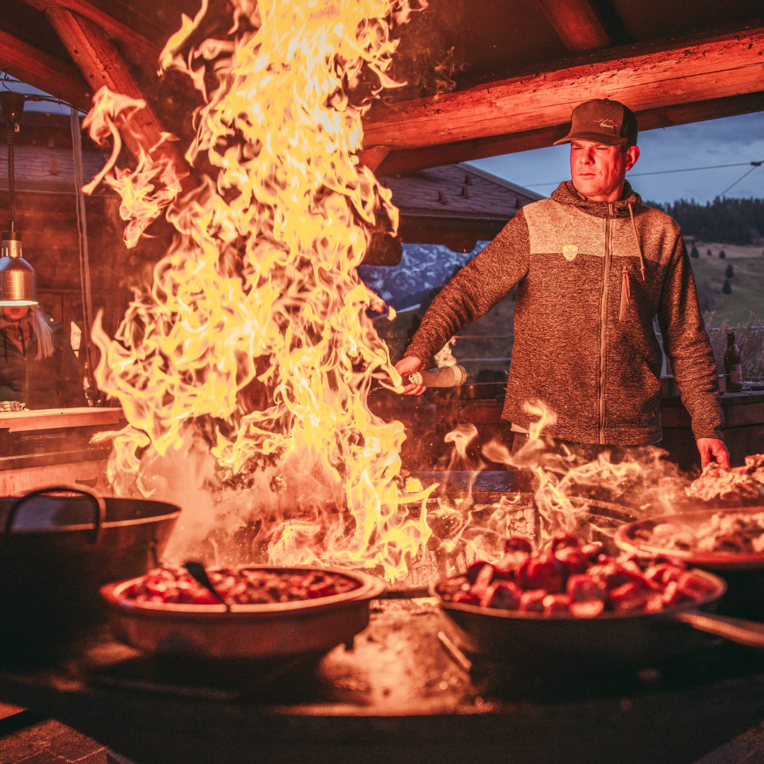 Da waren zum einen „Die Eisernen“ rund um Werner Kubitschek, die sich den Berg hochkämpften – trotz fortgeschrittener Uhrzeit und Nebel. Dann „Die Funktionsklamotten-Gang“, die auf E-Bikes die Trails unsicher machte. Und schließlich „Die Ehrlichen“: eine Gruppe netzeffektler blieb einfach im Hüttendorf, ratschte, saunierte oder genoss den Infinity-Pool mit Blick auf das Steinerne Meer. Dass es dort trotz beheiztem Wasser nach fünf Minuten „frisch“ wurde, tat der Stimmung keinen Abbruch – schließlich hatten wir unseren Kollegen Franz* (*Name von der Redaktion geändert) dabei, der den Aqua-Jogging-Trainer gab und uns in Bewegung hielt.